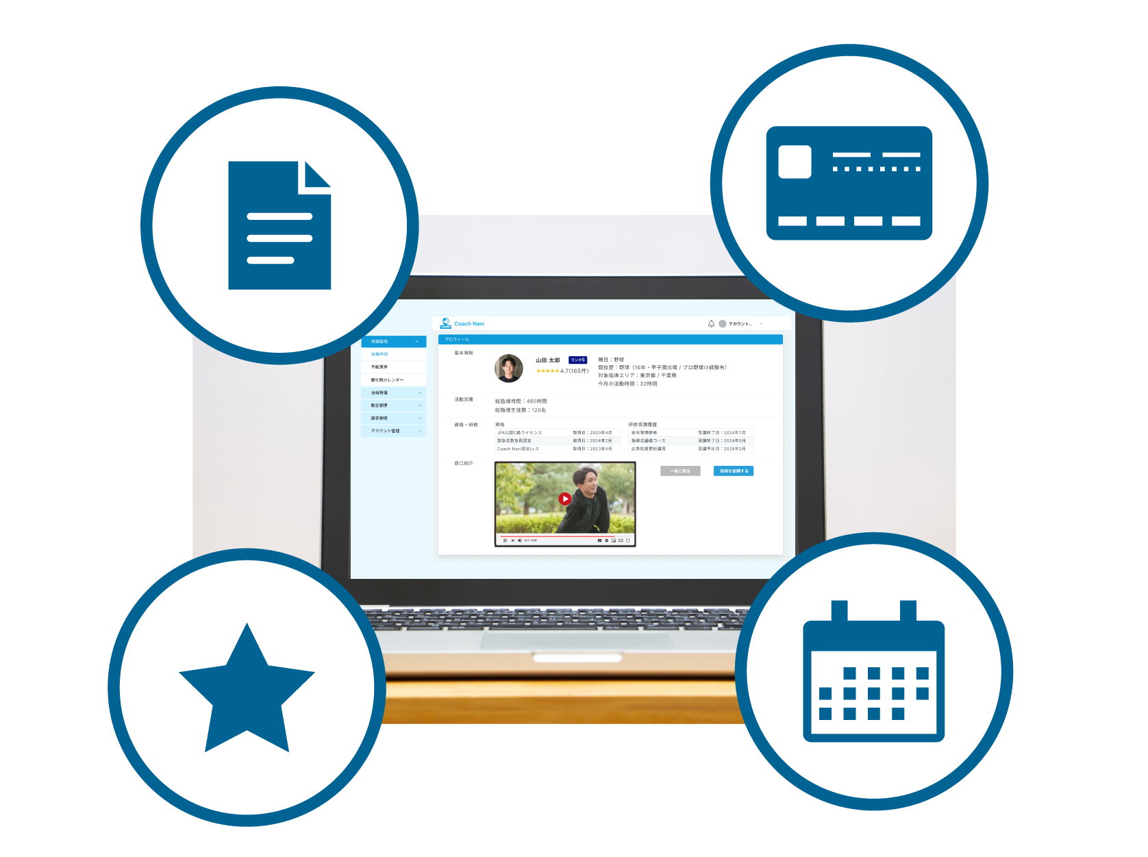 登録から契約・支払いまで、すべてCoachNavi上で完結。